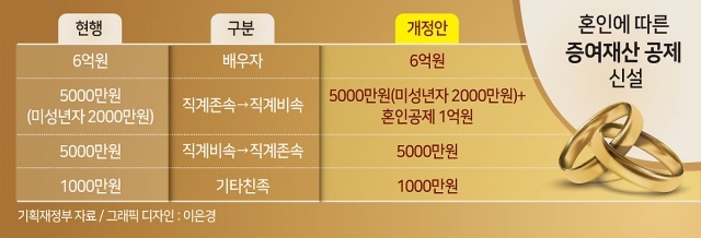 혼인시 증여세 면제 0.5억→1.5억원...영유아 의료비 세액공제 한도 폐지