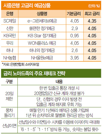 고금리 장기화 전망에 힘이 실리면서 눈에 띄는 특판 예적금 상품이 속속 출시되고 있다. 예적금 상품에 관심 많은 사람들 사이에선 과거 고금리 시절 유행했던 ‘풍차 돌리기’ ‘선납이연’ 같은 재테크 방법이 인기다. 고금리 예적금 상품을 노리는 ‘금리 노마드족’의 재테크 전략을 분석한다.